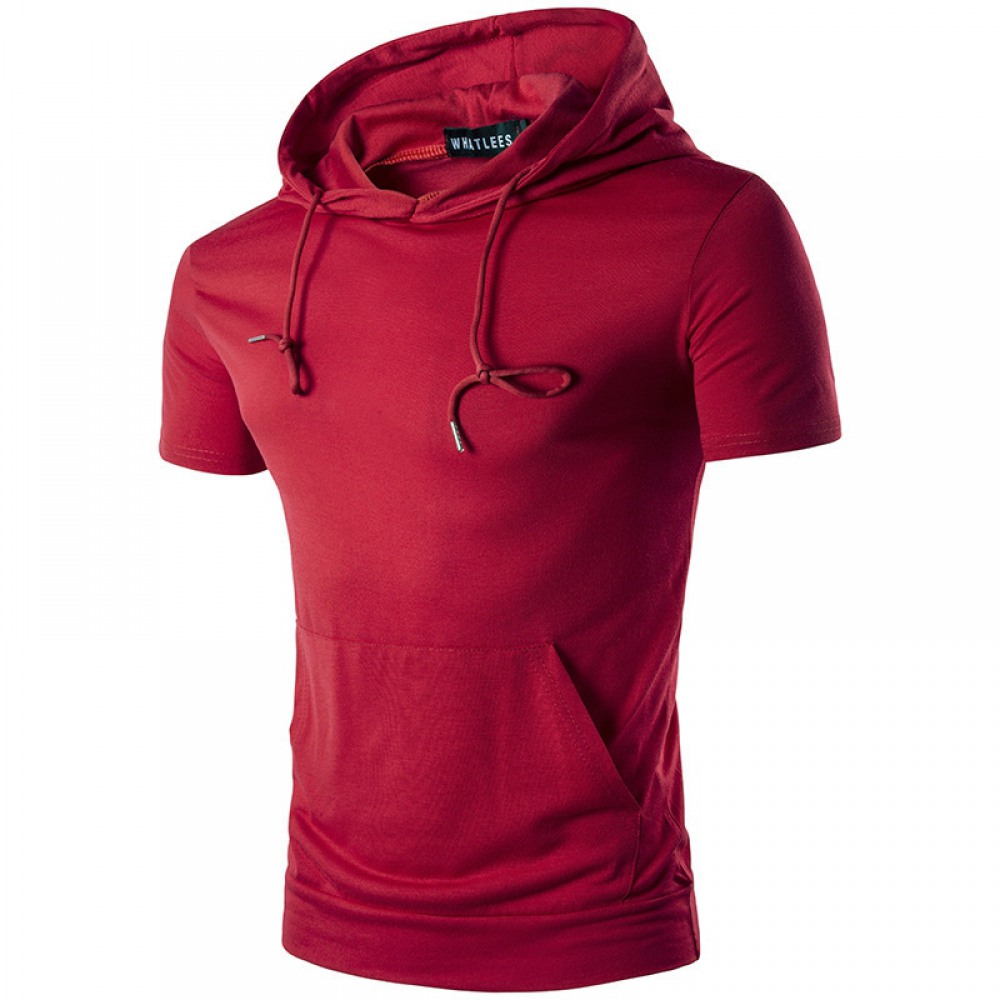 Casual Trendy Men's Hooded T-Shirt Mens Summer Solid Color Cotton Short-Sleeved T-Shirts