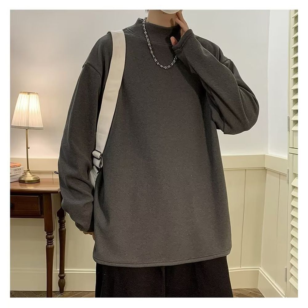 Men's Long-sleeved Fleece Shirt Solid Color Thickened Semi-high Collar