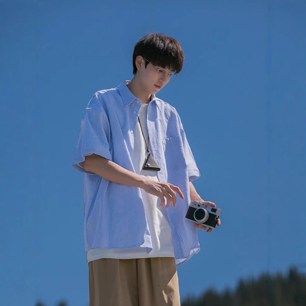 Men's Striped Short Sleeve Casual Shirt