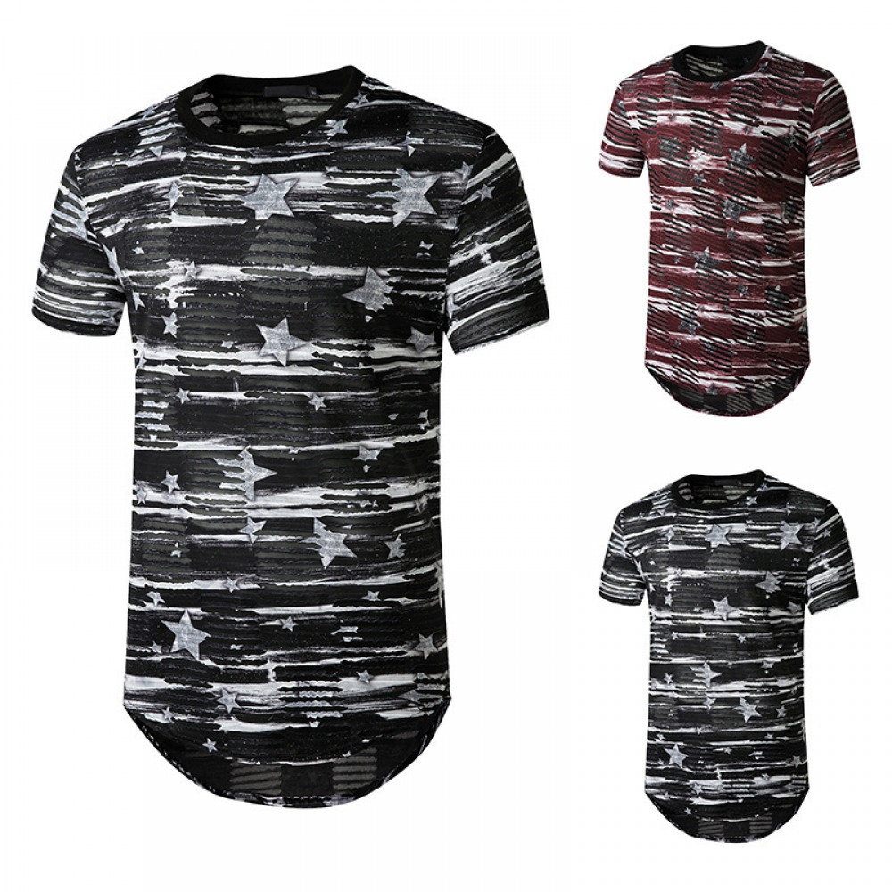 New Summer Men's Short-Sleeved T-Shirt Mens Contrast Striped Slim Casual T-Shirt