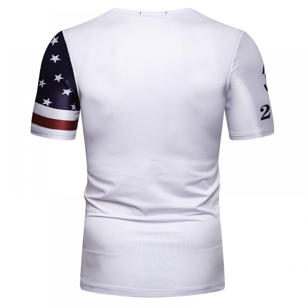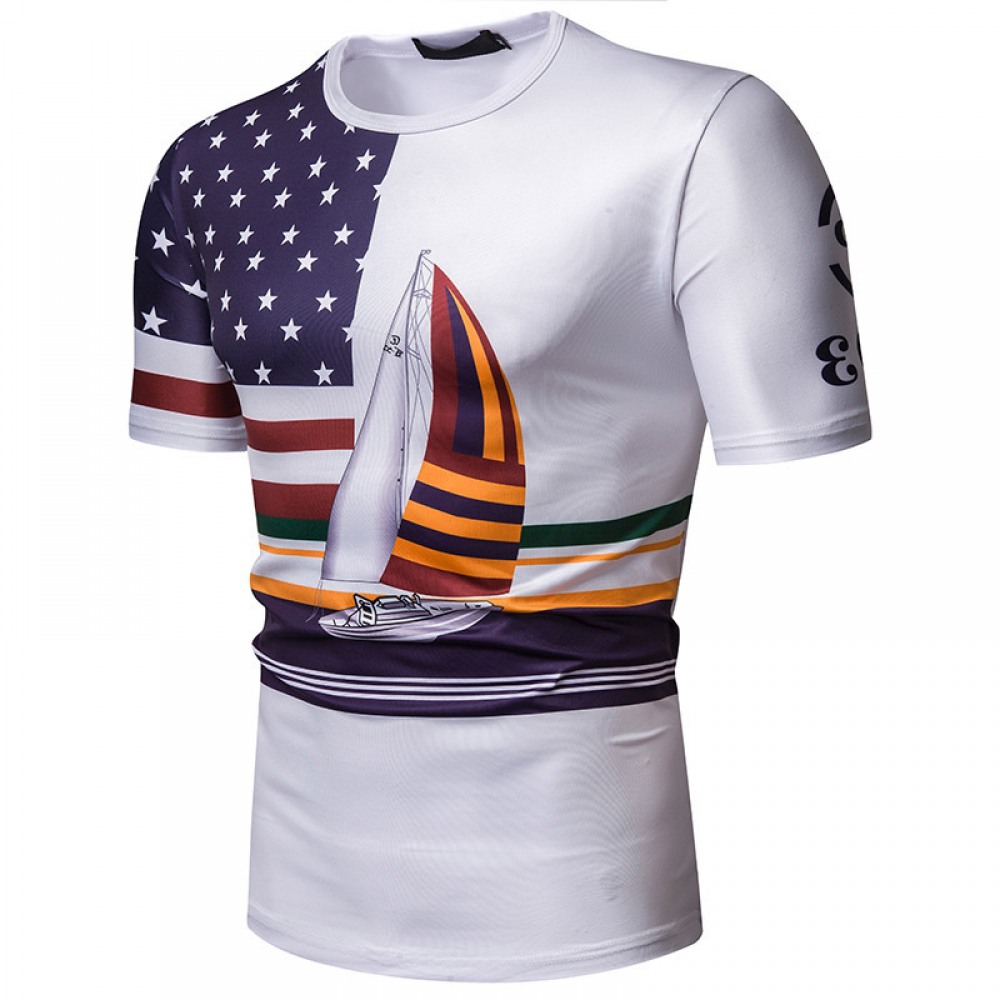 New Men's Plus Size Stars and Stripes Sailboat Print Short Sleeve T-Shirt