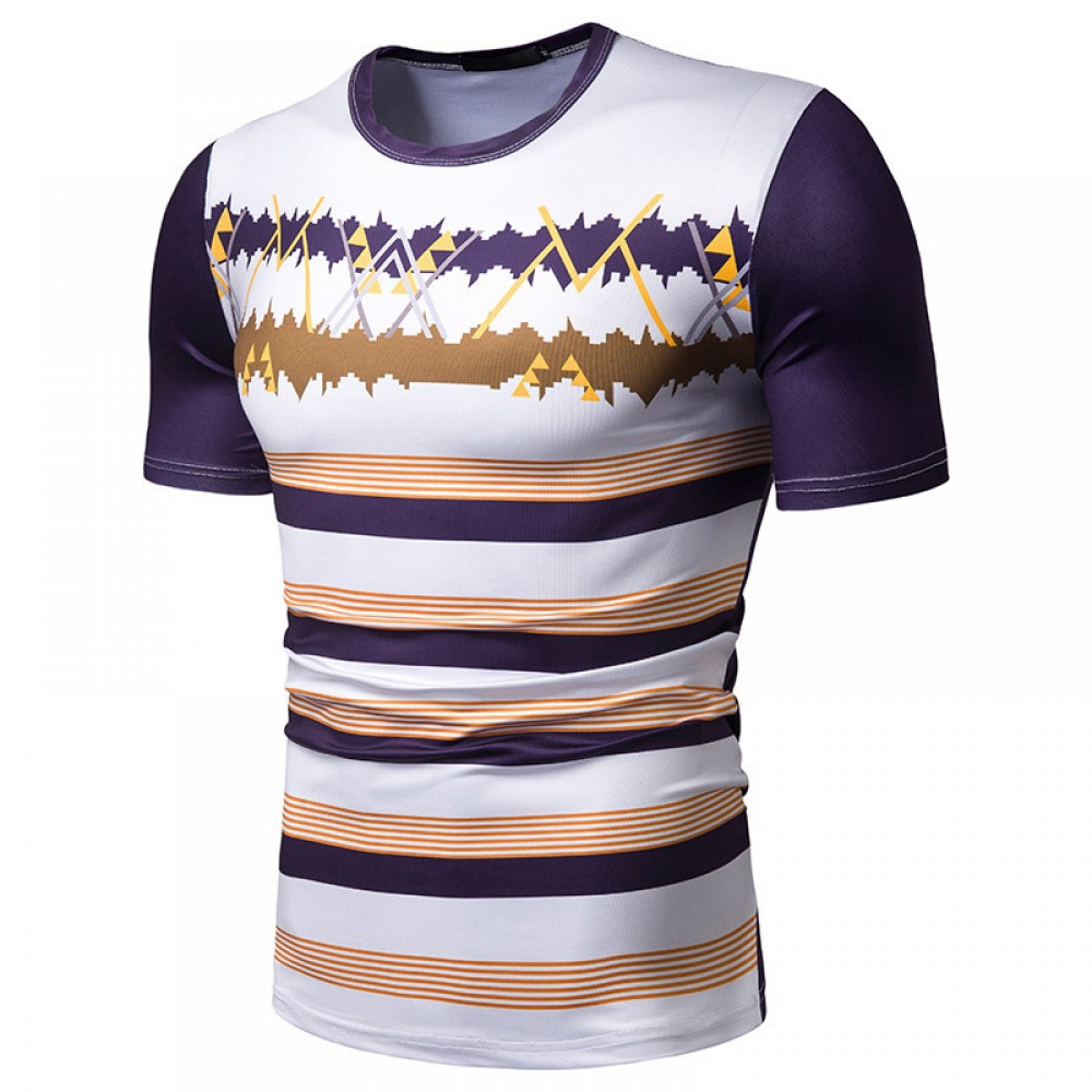 New Summer Men's Short-Sleeved T-Shirt Mens Contrast Striped Slim Casual T-Shirt