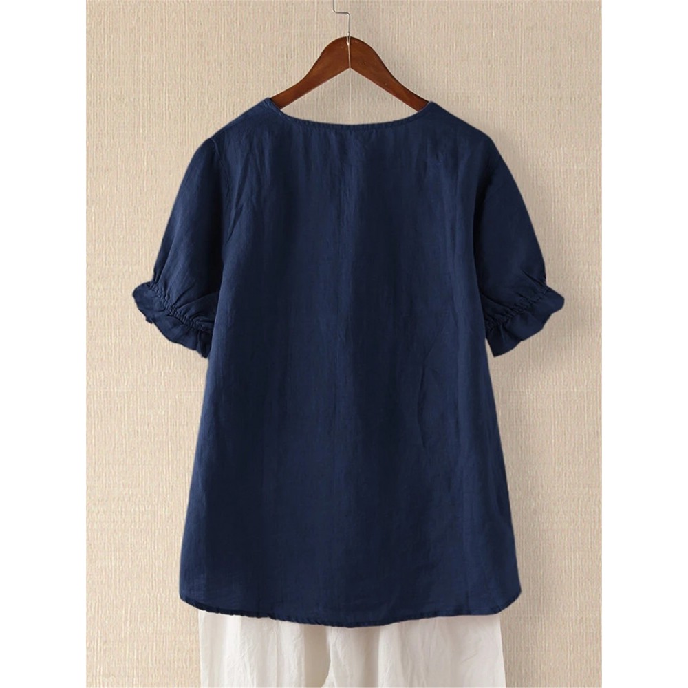 Summer Round Neck Short-Sleeved T-Shirt Couple Loose Version Solid Color Combed Cotton