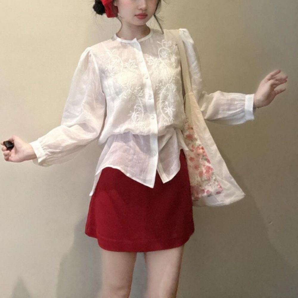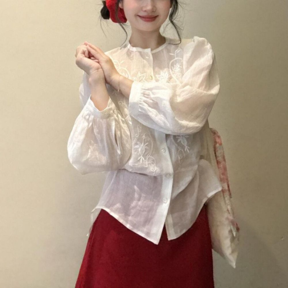 Retro Long Sleeve Shirt Women's Loose Casual Short Top
