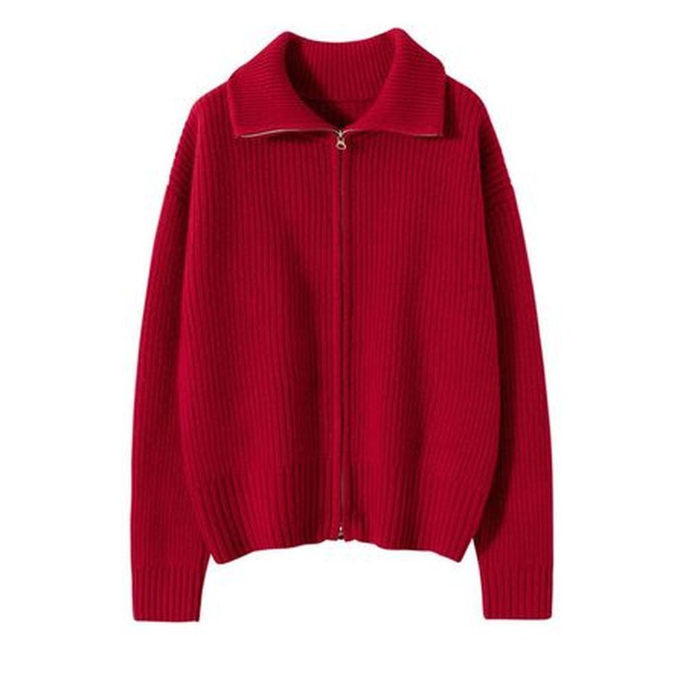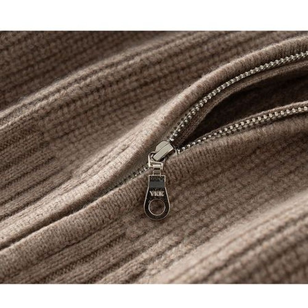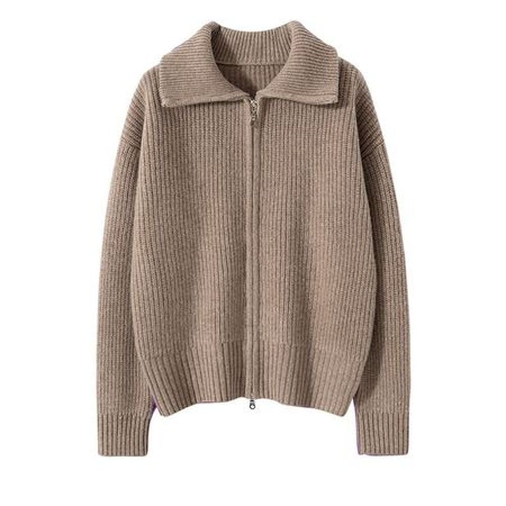 Women's Wool Knitted High Collar Solid Color Loose Cashmere Zipper Jacket