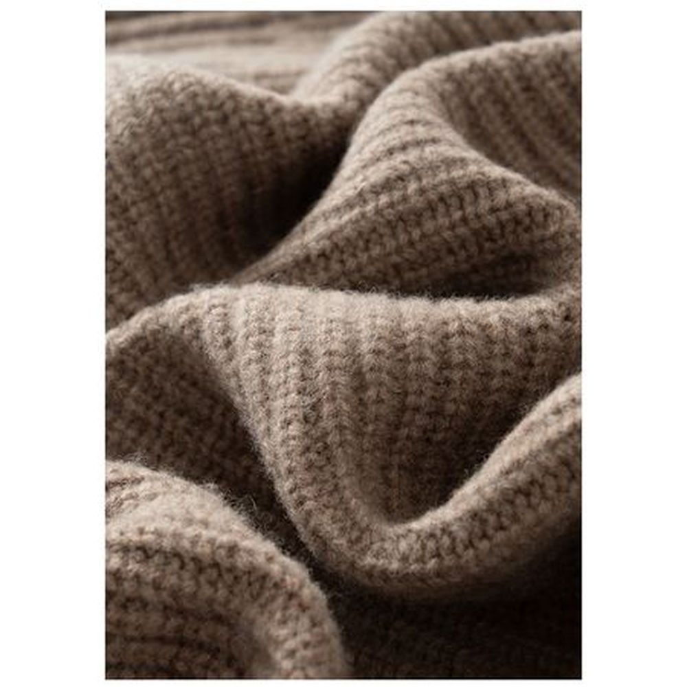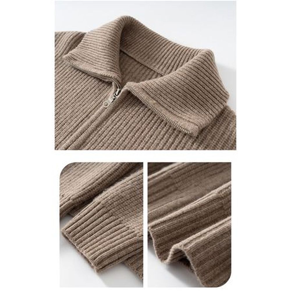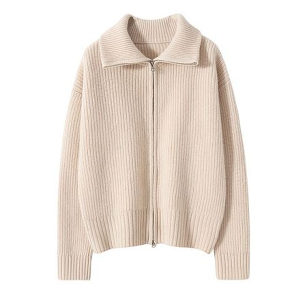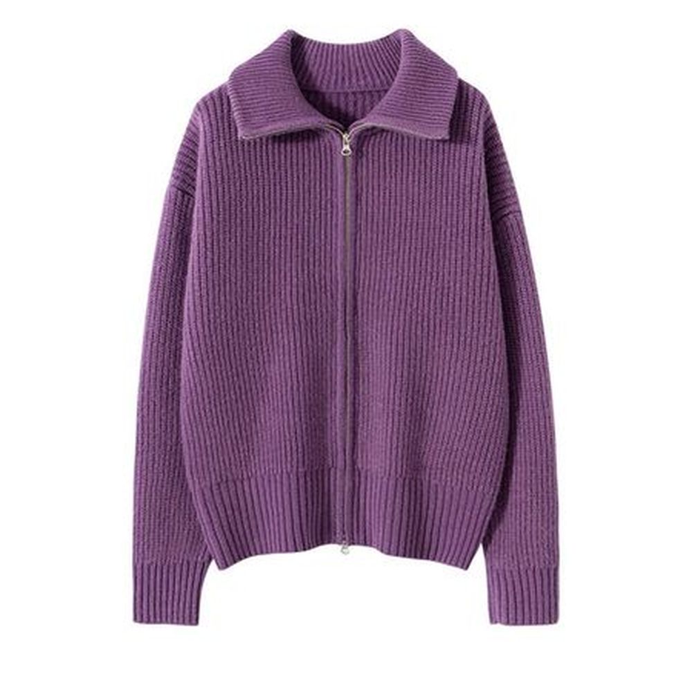 Women's Wool Knitted High Collar Solid Color Loose Cashmere Zipper Jacket