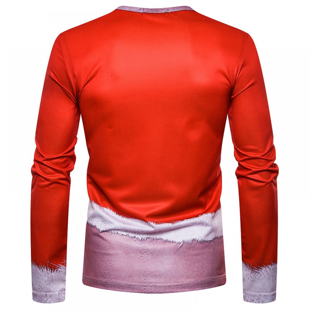 New 3D Personality Printing Fashion Men's Christmas Button Pattern Long-Sleeved T-Shirt