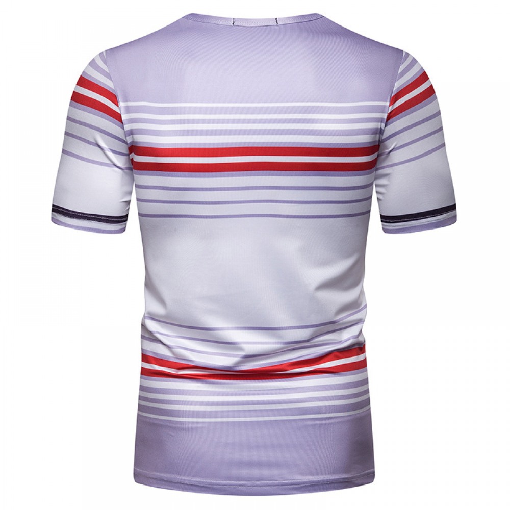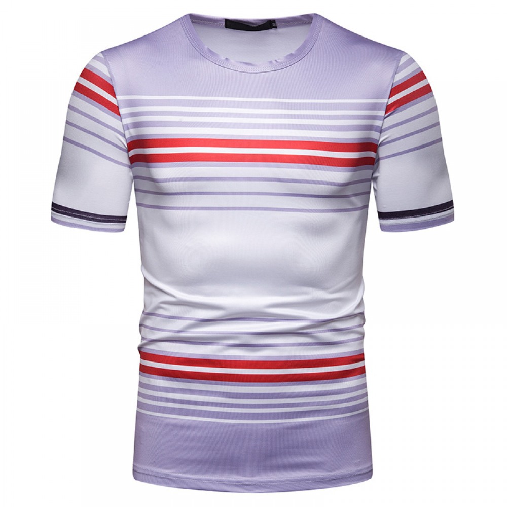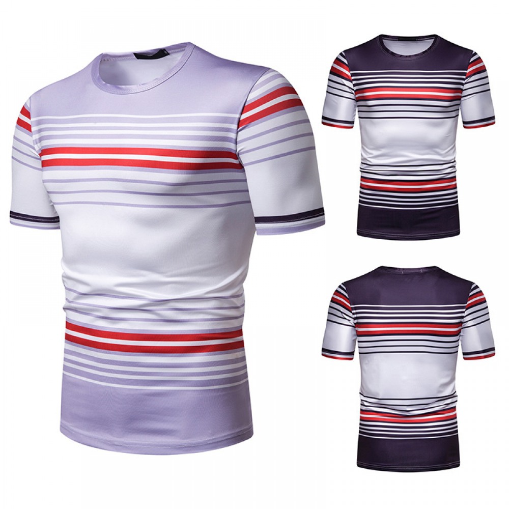 New Summer Men's Short-Sleeved T-Shirt Men's Contrast Striped Slim Casual T-Shirt