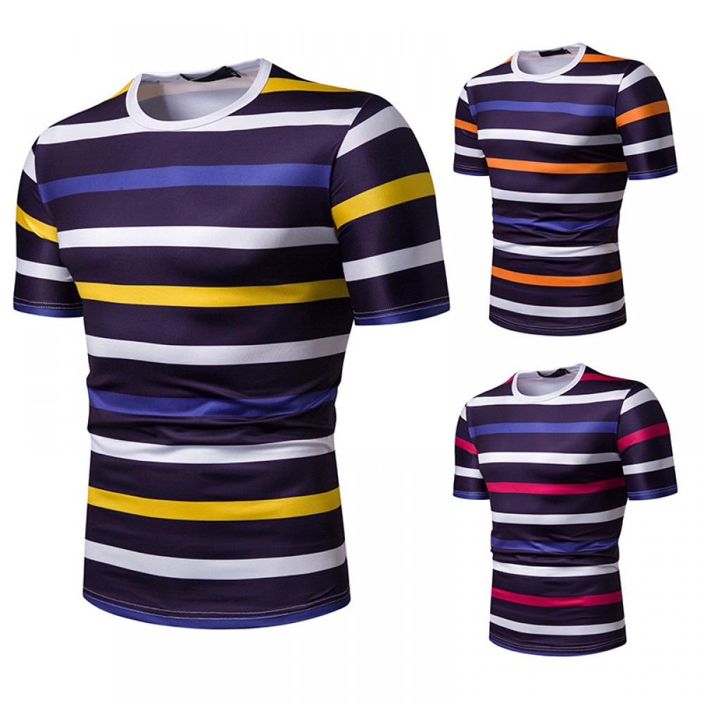 New Summer Men's Short-Sleeved T-Shirt Men's Contrast Striped Slim Casual T-Shirt
